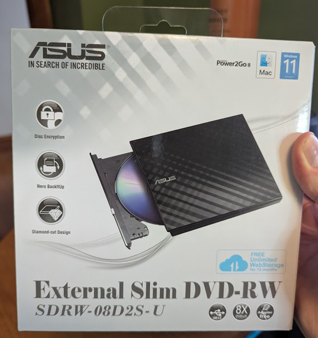 Note: this is where progress stopped while writing Part 1. I let this sit for hours to see if it would ever load. Returning to this almost two months later, my enthusiasm for the project had waned substantially. I had no 2.5” drives to put in the laptop, and the disc drive seemed broken anyway. The Xbox was a dead-end without a hardware mod, and I wasn’t about to invest in that to see some golf course JPEGs, regardless of how lush and scenic they were. I decided it was time to make some concessions. I drove to Office Depot, but the only USB optical drive there was a Blu Ray drive for $120. I drove across the street to Best Buy and found an incredible relic.